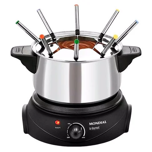 La fondue tiene una potencia máxima de 1500 W, más que suficiente para fundir con mucha rapidez todo tipo de alimentos, y permite ajustar la temperatura adecuada a cada receta. Recipiente de acero inoxidable con revestimiento antiadherente con capacidad para 1,5 litros, e incluye 8 tenedores de diferentes colores para no mezclarlos a la hora de utilizar la fondue y una bandeja muy práctica para depositar los alimentos.